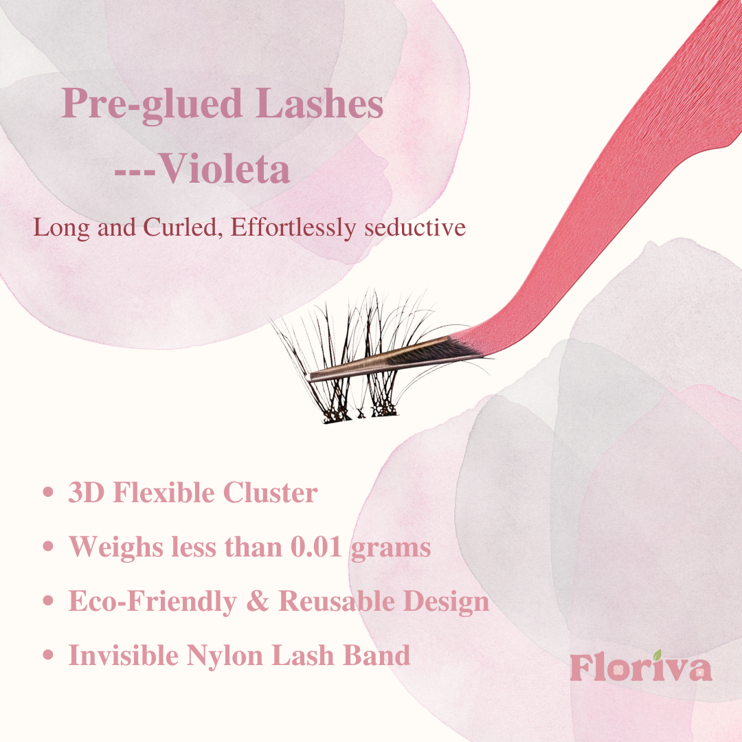 Pre-glued Lashes - Violeta - Eyelash Extension Daily Gentle Makeup, Underlash Style Cosmetic